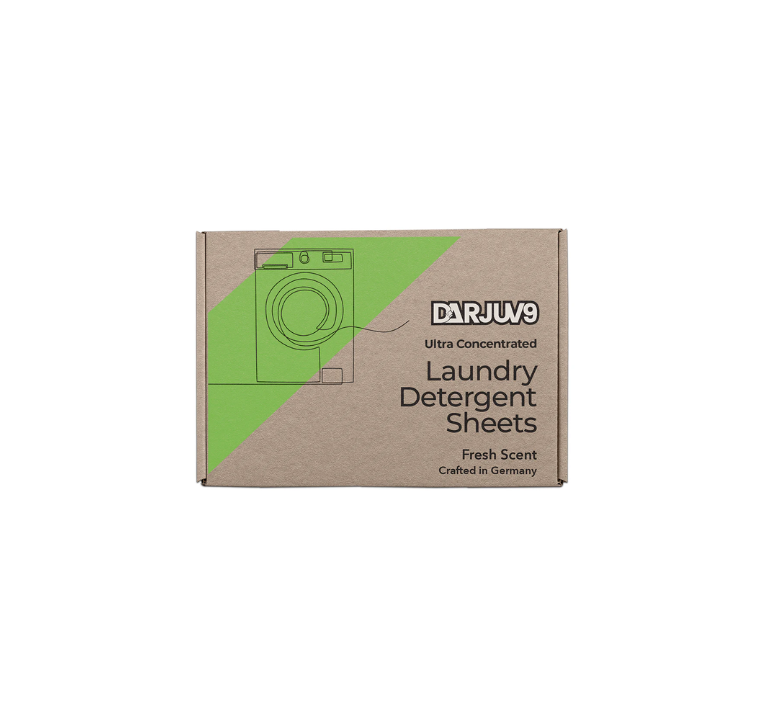 Darjuv9 Laundry Detergent Sheets are eco-friendly, pre-measured sheets designed to simplify laundry by effectively removing tough stains without the use of liquid detergents. Each box contains 30 sheets.