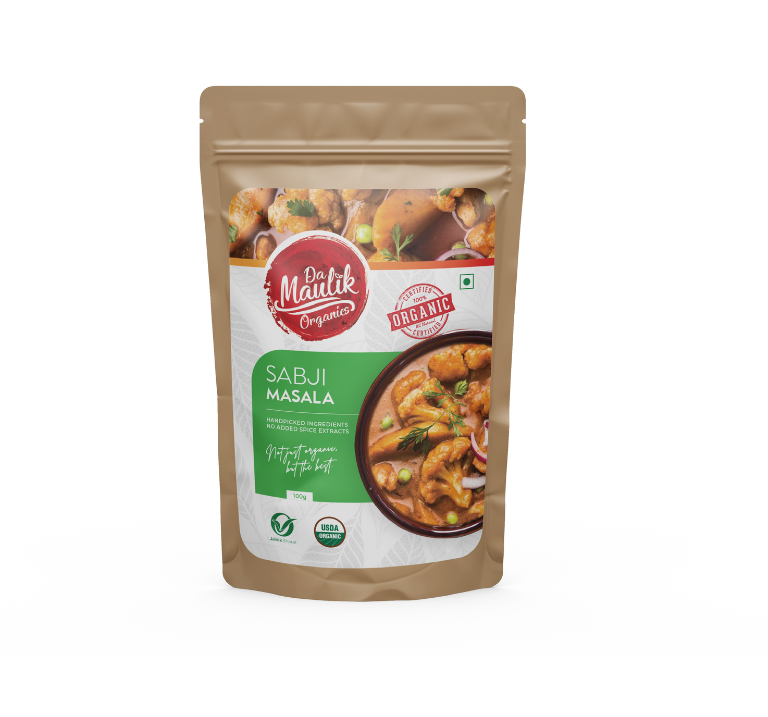 Da Maulik Organic Sabji Masala is a vibrant, all-natural spice blend made from premium organic ingredients. Perfect for enhancing the flavor of your vegetable dishes, it offers a rich, aromatic taste with a perfect balance of spices. Free from preservatives and artificial additives, this masala brings the true essence of organic goodness, making every meal both delicious and healthy.